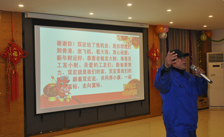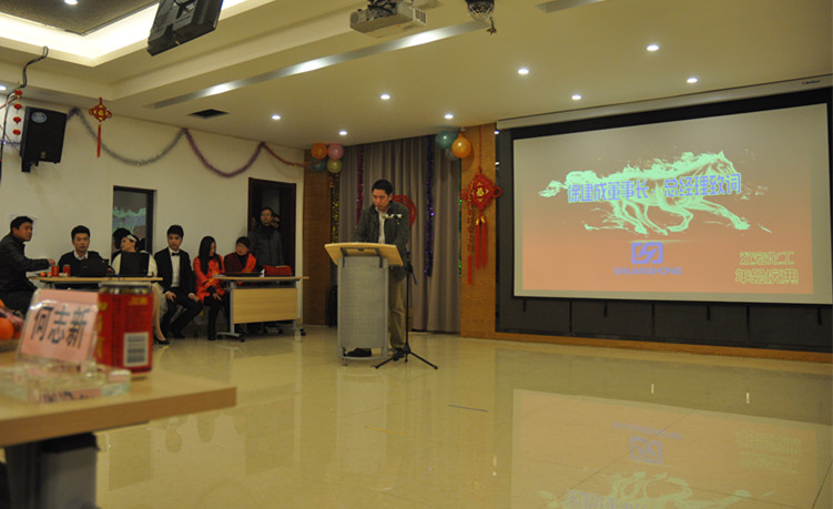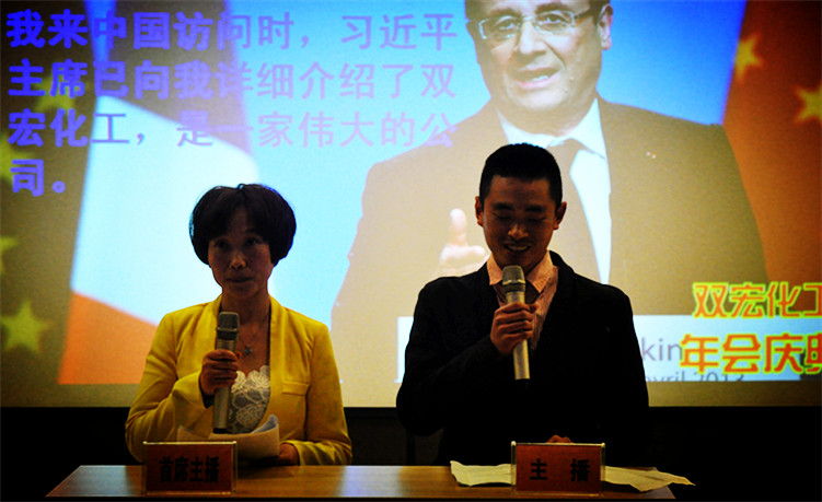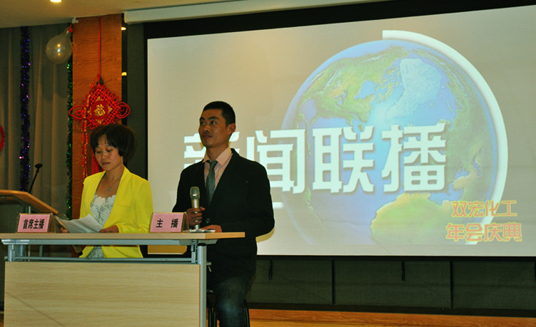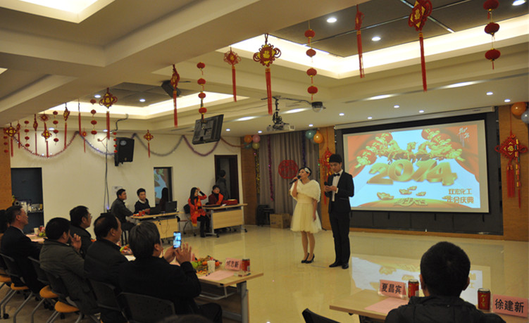 双宏化工有限公司年度总结表彰大会暨新春联欢会于2014年1月24日在公司研发办公大楼里盛大召开,这次年会还邀请到了雅畈镇党委书记陈柏清、雅畈镇镇长程增发等六位重要嘉宾的出席。