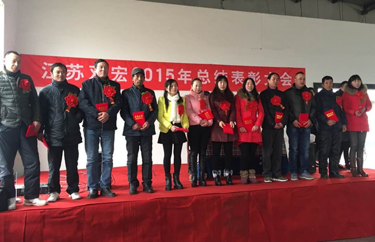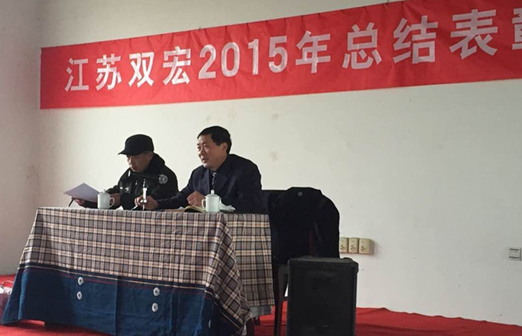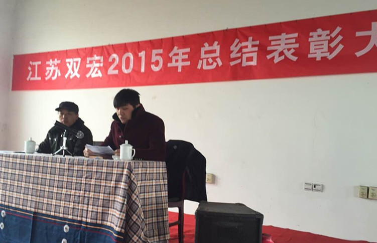 1月31日,江苏双宏召开了年终表彰大会,对全厂车间、部门选出的13位优秀员工进行表彰颁奖,项总总结15年全厂工作情况和对16年工作计划以及中层管理人员代表发言和优秀员工发言。